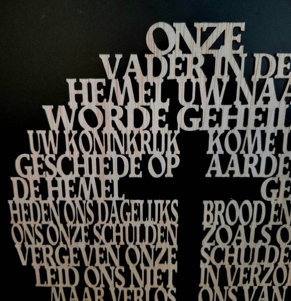 Het Onze Vader in ronde vorm, uitgesneden tekst.