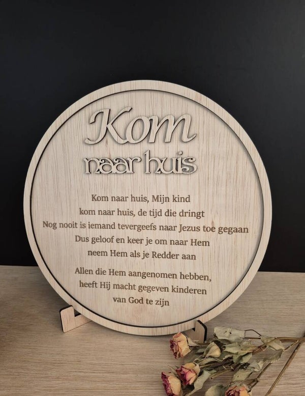 Tekstbord "Kom naar huis" - rond groot